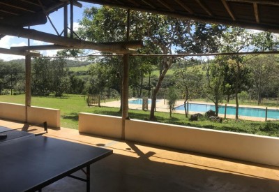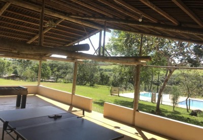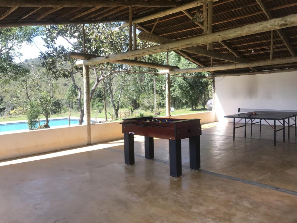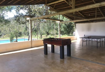 Se você ainda acha que falta alguma coisa, não se esqueça do salão de jogos com pingue-pongue e pebolim. Sem contar a área externa com o campo de futebol society, quadra de grama de vôlei e jogo de espirobol.